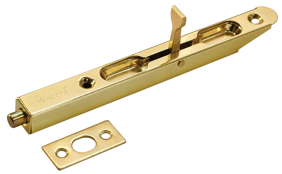 Скругленный торцевой шпингалет используется для врезки в дверь и фиксирования полотна в проеме.