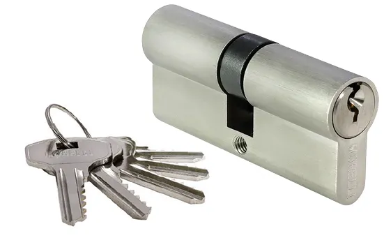 Ключевой цилиндр с заверткой для двери вставляется в замок или защелку для закрытия ключом с одной стороны помещения и поворота кноба с другой.